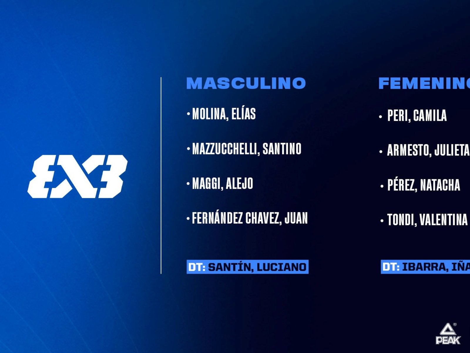 Las convocadas en la rama femenina son: Camila Peri, Julieta Armesto, Natacha Pérez y Valentina Tondi.