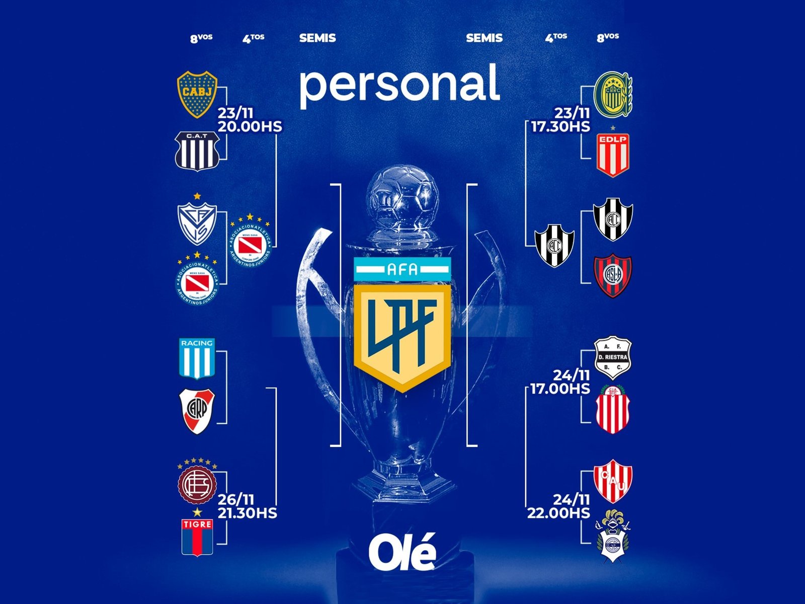 Del otro lado del cuadro, el ganador de River y Racing, partido que se jugará en el Cilindro a las 19:15hs. del martes, tendrá que verse las caras con el que resulte vencedor del Lanús-Tigre a disputarse ese mismo día a las 21:30 en La Fortaleza.