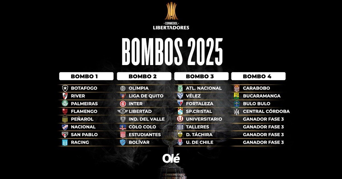 Los bombos de la Libertadores 2025 para la fase de grupos