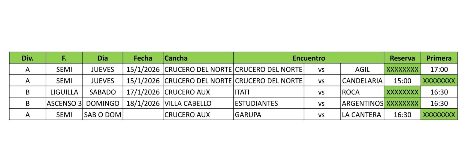 Por el torneo de Reserva de la Primera A, mañana jugarán Crucero-Candelaria, a las 15 y el fin de semana lo harán Garupá Fútbol Club y Candelaria, en instancia de semifinales.