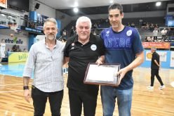 Sergio Feversani, presidente de la institución; junto al mánager, Jose Fabio; fueron los encargados de entregar una placa conmemorativa para tan importante récord antes del encuentro que el pasado viernes ante Olímpico de Santiago del Estero.