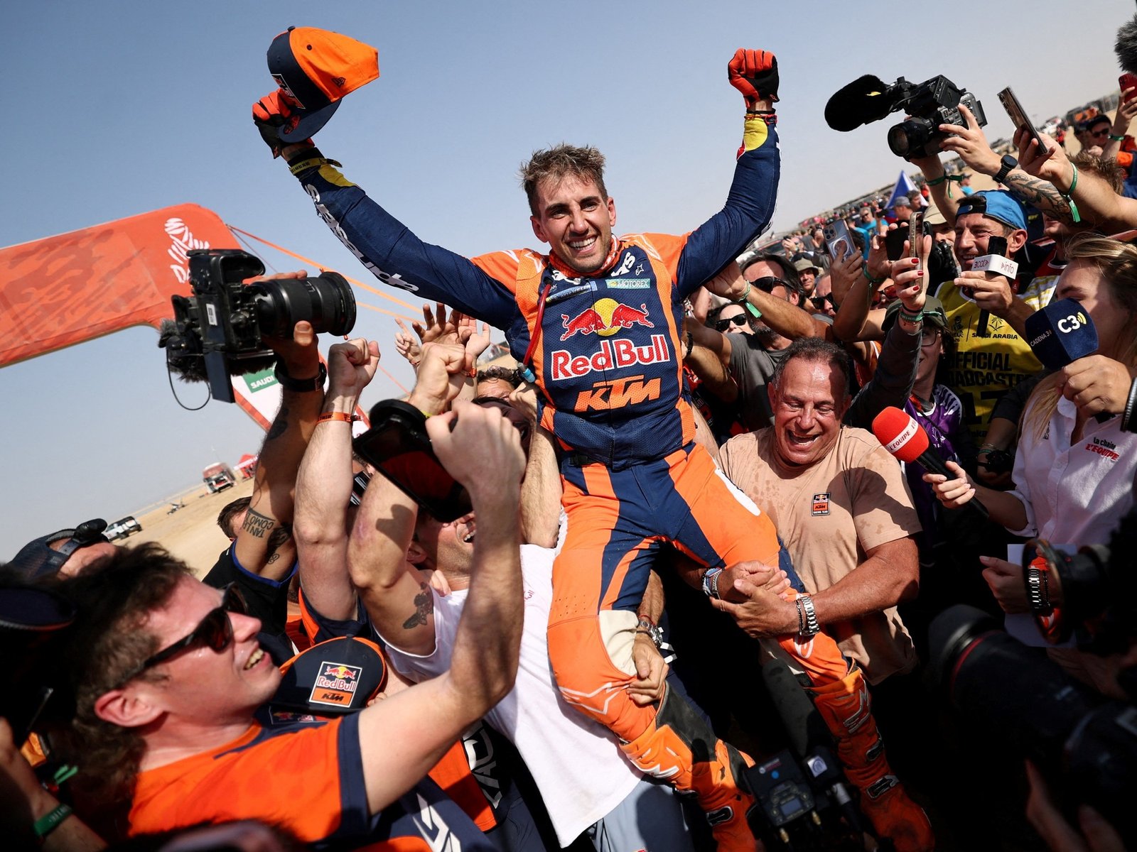 La bandera argentina volvió a flamear en lo más alto del Dakar. Después de unas arduas 49 horas -repartidas en dos semanas- arriba de su moto KTM, Luciano Benavides cerró una histórica participación en Yanbu, Arabia Saudita, para quedarse con el primer puesto de motos por una diferencia de apenas dos segundos con el estadounidense Ricky Brabec (Honda).