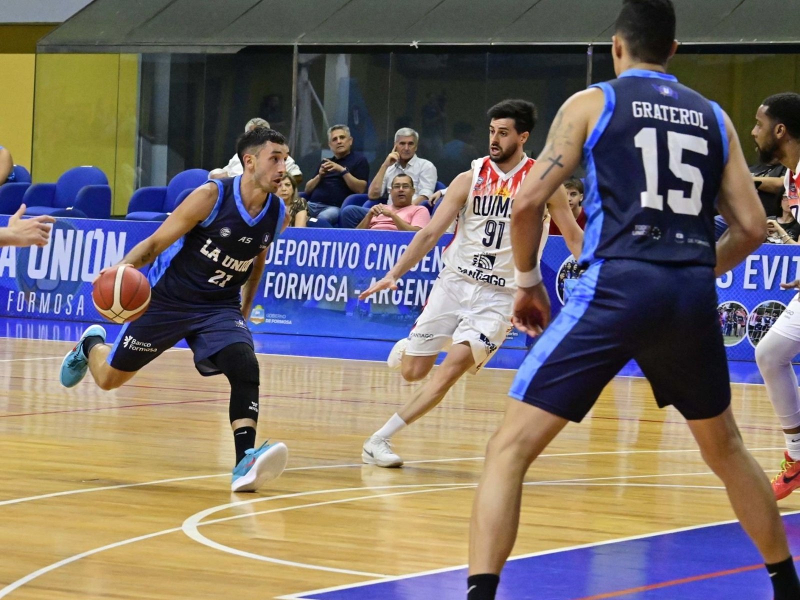 En el tercero se repitió la tónica, con los formoseños manteniendo la ventaja para el 62-58. Sin embargo, largó el cuarto final con un 62-58 para los de Narvarte y en 2 minutos Quimsa metió un 8-2 que lo puso arriba como no ocurría desde el segundo cuarto, por 66 a 64. Con el juego 70 a 67 para Quimsa, hubo sanción de falta ofensiva de Marina sobre Collomb, que derivó además en técnico, que la visita cambió por 4 tantos y una 74-67 con 5m44 minutos por jugar. Aunque La Unión cerró su tablero y , con los triples de Acevedo y Graterol, con 2m39 para la chicharra lo dio vuelta: 77-74. Machuca ganó dos libres a 1m52 quedar 77 a 76 y, con Spano bajo del aro, La U pasó 78 a 77. Con 6 segundos, la última bola era de los de Ramella y la defensa del local hizo el resto.
