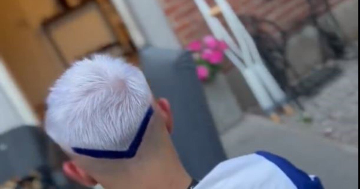 Junto al barbero Ian Franco, se hizo un corte de pelo muy particular: platinado en toda la cabeza, con una “V” azul en la nuca que imita el icónico símbolo del club.
