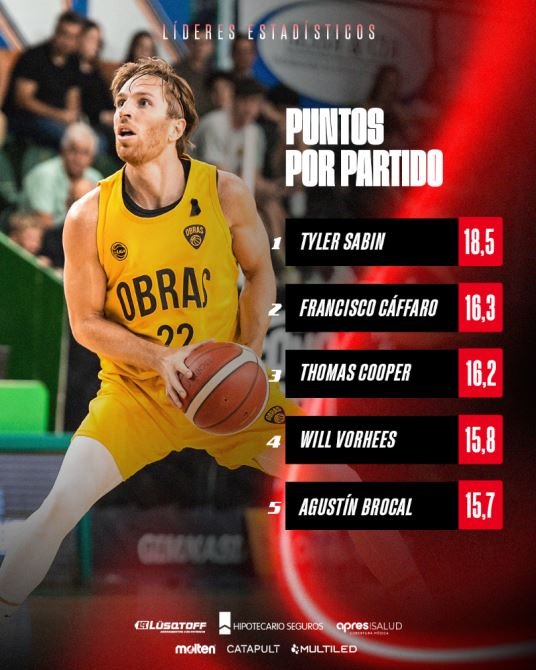 Entre los cinco más destacados goleadores, figuran dos basquetbolistas de Oberá Tenis Club: Will Vorhees y Agustín Brocal.