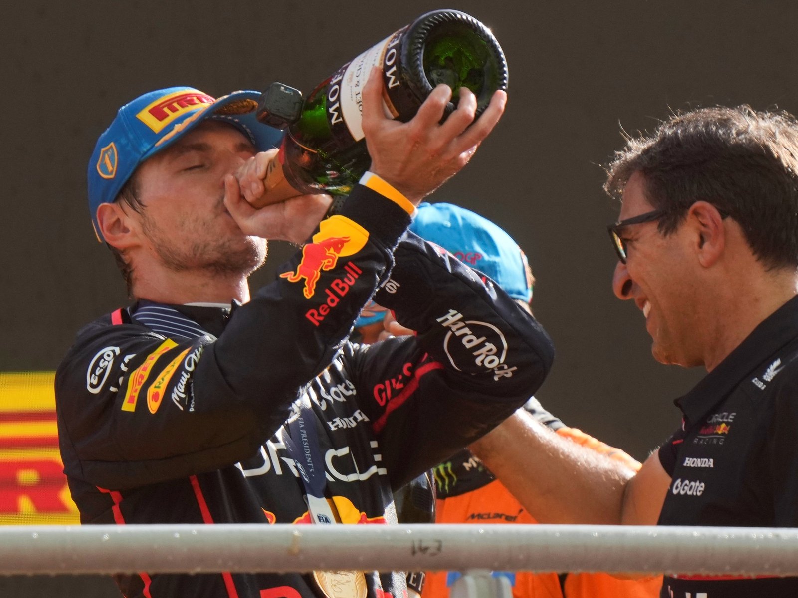 Con el correr de las vueltas se vio lo mejor de Verstappen, que ya no solo adelanta con agresividad sino que sumó gestión. Cuidó el neumático, mantuvo la distancia con sus perseguidores y les ganó el duelo de boxes. De hecho, los compañeros de McLaren tuvieron sus propios mambos en pits…