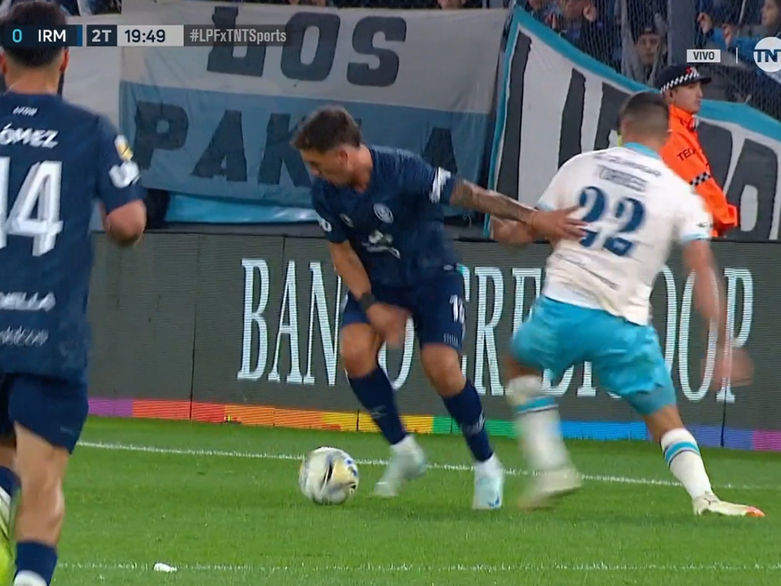 A los 22 minutos, Franco Pardo peleó cuerpo a cuerpo con Fabrizio Sartori para evitar que el hombre de Independiente Rivadavia llegara al área y, en la caída, sufrió una lesión en el aductor.