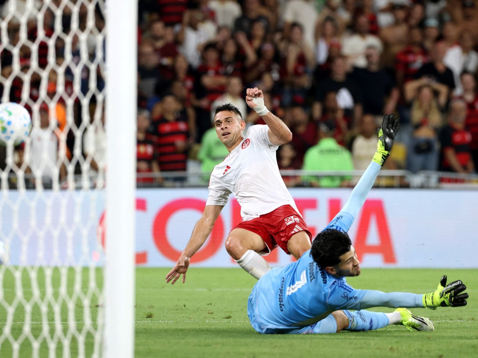 Por la segunda fecha del Brasileirao, el Inter visitó al Fla, último campeón y repleto de estrellas. Pero uno de los focos de atención se lo llevó Borré: en el cierre del primer tiempo, el colombiano recibió un pase de Johan Carbonero, ex Racing, enganchó adentro del área y definió ante Agustín Rossi, ex Boca, para poner el 1-0 parcial.