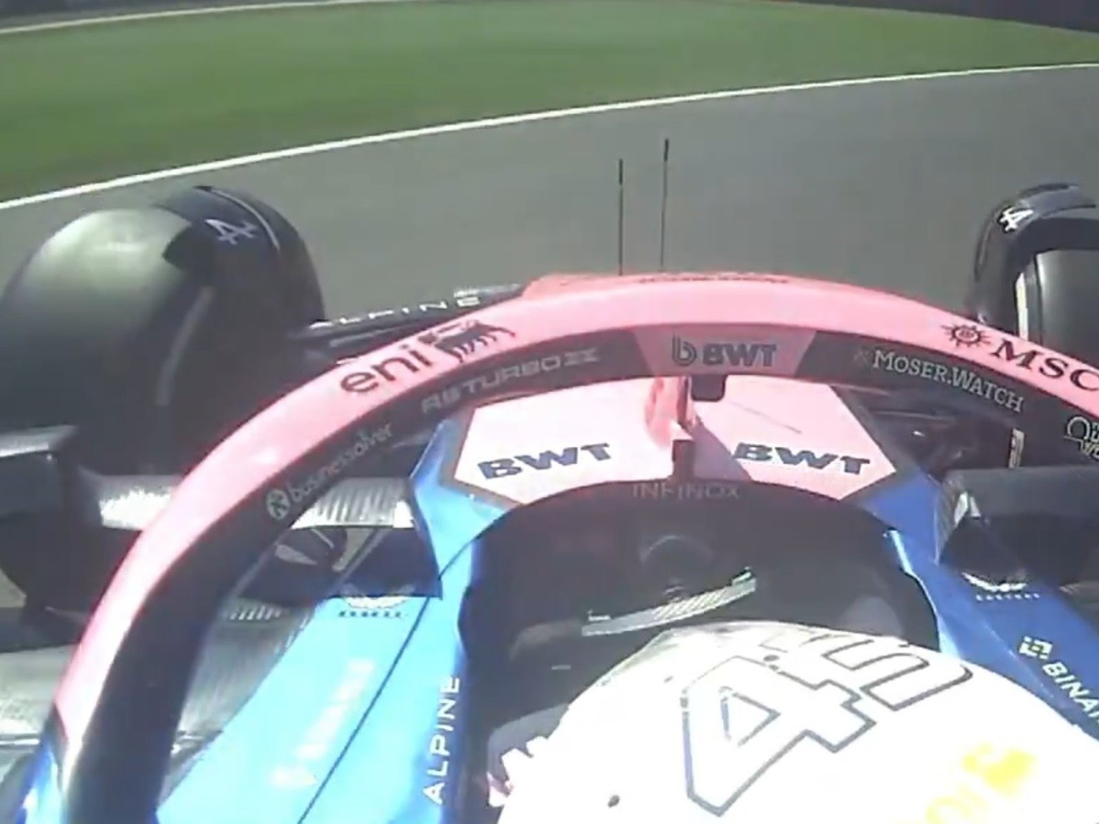 El pilarense llegó a la primera curva en la última colocación y, cuando intentaba girar con normalidad, se tocó con el Aston Martin de Lance Stroll, que ingresó por la parte interna de la curva a izquierdas y lo encerró. El leve contacto hizo que el A525 pisara el pasto, lo que provocó un trompo que lo dejó muy retrasado respecto del resto de los pilotos.