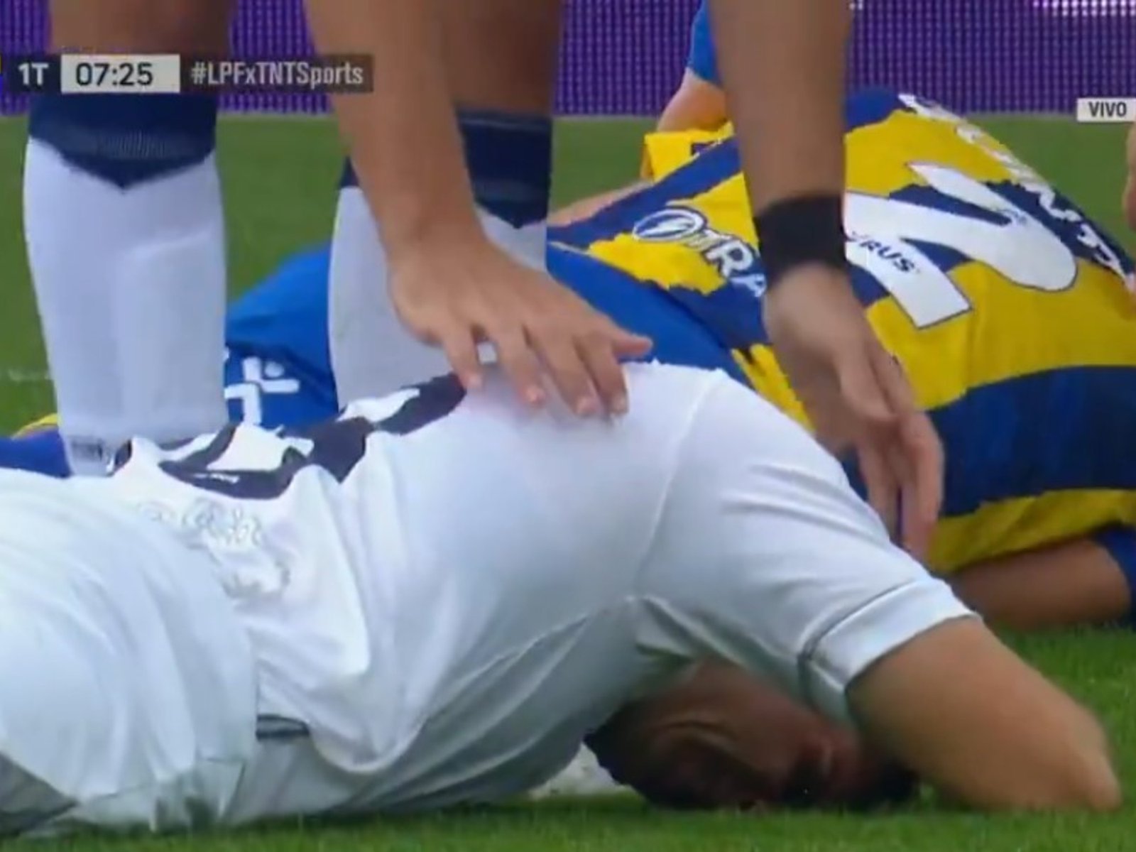 Inmediatamente, el ex Argentinos y Lanús debió abandonar la cancha (reemplazado por Facundo Mallo) para ser trasladado a un nosocomio próximo para ser revisado. Por su parte, con algo de dolor, el mediocampista del Lobo pudo seguir en el terreno de juego.