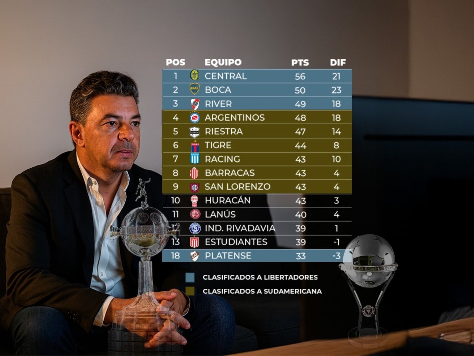 En una coyuntura incómoda, con un plantel que terminó de completarse con la llegada de los convocados para la fecha FIFA pero que aun con ellos ya venía en el tobogán, River deberá entonces hacerle frente a lo que toque. Entendiendo que le urge mantener -o en el escenario más optimista, mejorar- ese tercer puesto: es el que le asegurará un lugar en el próximo torneo continental sin tener que depender de una vuelta olímpica. Una Copa que no se quiere perder, que viene jugando de manera ininterrumpida desde 2015. Y el que además de darle un estatus deportivo y competitivo, a su vez le garantizará ingresos importantes.
