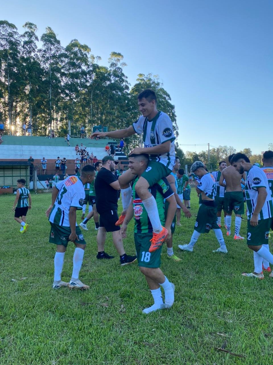 «Tyson» Olivera, el héroe del ascenso de Yacutinga es llevado en andas en pleno festejo albiverde